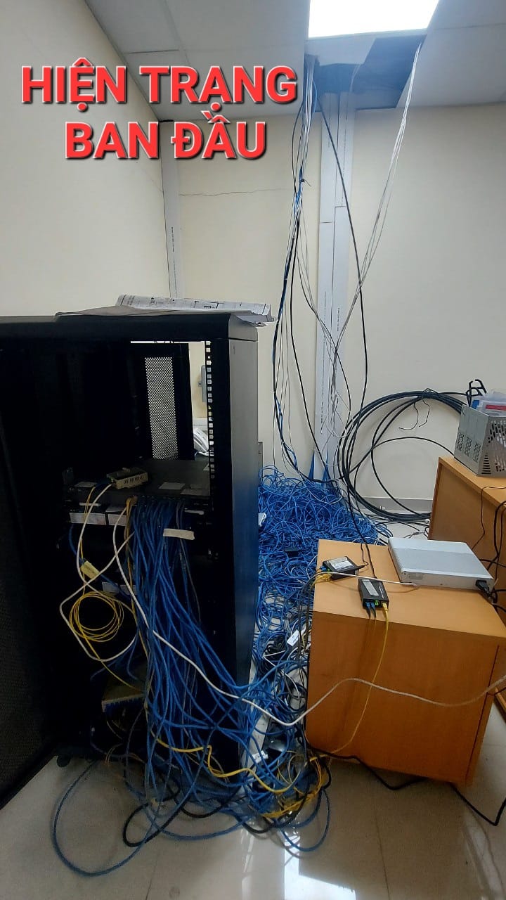 Hệ thống dây cáp mất thẩm mỹ & mất an toàn: Dây mạng đi "mạng nhện" bừa bãi dưới sàn nhà, trần nhà không chỉ làm xấu không gian văn phòng mà còn tiềm ẩn nguy cơ chập cháy, đứt cáp do chuột cắn.