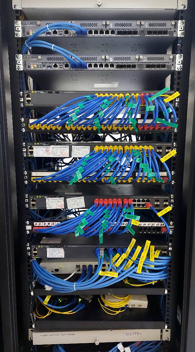 Quy hoạch Tủ Rack (Tủ mạng) Trung tâm: Thu gom toàn bộ đầu dây mạng, dập cáp patch panel, lắp đặt gọn gàng các thiết bị Modem, Router, Switch vào tủ Rack chuyên dụng, giúp dễ dàng kiểm soát và mở rộng sau này.